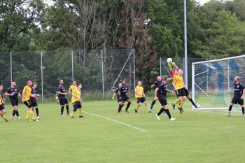 Die SG Auerbach/Troschenreuth gab von Beginn an den Ton an und ließ den Ball in den eigenen Reihen laufen, die Heimmannschaft tat sich indes schwer an den Ball zu kommen. So konnte Joao Rodrigues in der 10. Minute den 0:1 Führungstreffer für die Gäste erzielen. Hüttenbach-Simmelsdorf agierte mit langen Bällen, die von der gegnerischen Defensive abgefangen werden konnten. So ergaben sich weitere Chancen für die Gastmannschaft durch Johannes Lehner und Philipp Dimler, die nicht genutzt wurden. Nach einer halben Stunde war auch die Heimelf richtig im Spiel angekommen und setzte nun die Gäste stark unter Druck. Manuel Scharrer gelang in der 35. Minute der 1:1 Ausgleich. Auerbach/Troschenreuth verzettelte sich dabei in vielen Einzelaktionen, die wiederum Konterchancen für Hüttenbach-Simmelsdorf eröffneten. Mit dem Unentschieden ging es für beide Mannschaften in die Pause.